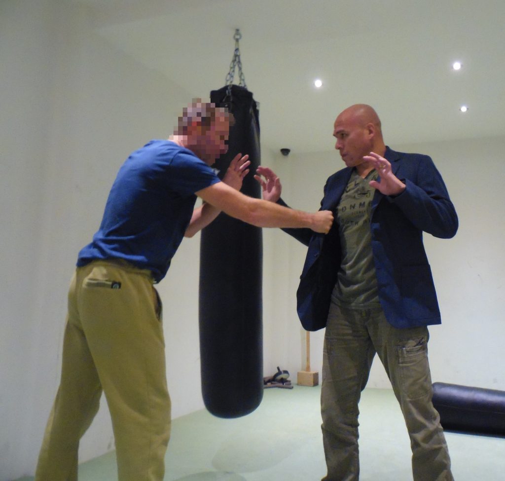 Nee, ik wist nooit van te voren wat ik deed om los te komen uit een kledinggreep. Daarom zeg ik nooit achteraf wat een ander mens had kunnen doen om los te komen uit een kledinggreep. Wél werd ik na een bevrijding uit zo een kledinggreep altijd door mijn tegenstanders verrot gescholden met allerlei nare ziektes. Daarnaast is (zonder dat ik een advocaat ben) ons strafrecht aardig duidelijk over kledinggrepen, over door iemand aan je kleren vast gepakt worden, over door iemand bij de kleren gegrepen worden: dat is direct een aanranding! Ook zodra iemand ongevraagd jouw bij je lichaam pakt, dat omstrengeld en je niet meer loslaat dan is er sprake van een aanranding. En elke aanranding is een strafbare mishandeling. Op zo een mishandling mag de verdedigende partij reageren om los te komen. Zodra je als verdedigende partij maar meteen stopt met knokken zodra je jezelf losgemaakt heb, je de ontstane situatie niet verder escaleert en je alle agressie weg laat. Ga dus direct na je zelfbevrijding weg en keer niet meer naar deze situatie terug want dáár houden onze Nederlandse rechters niet van. Als je weg kon komen (ook al was dit ná een bevrijding) dan moet je weg blijven anders krijg je zelf strafrechtelijke problemen.